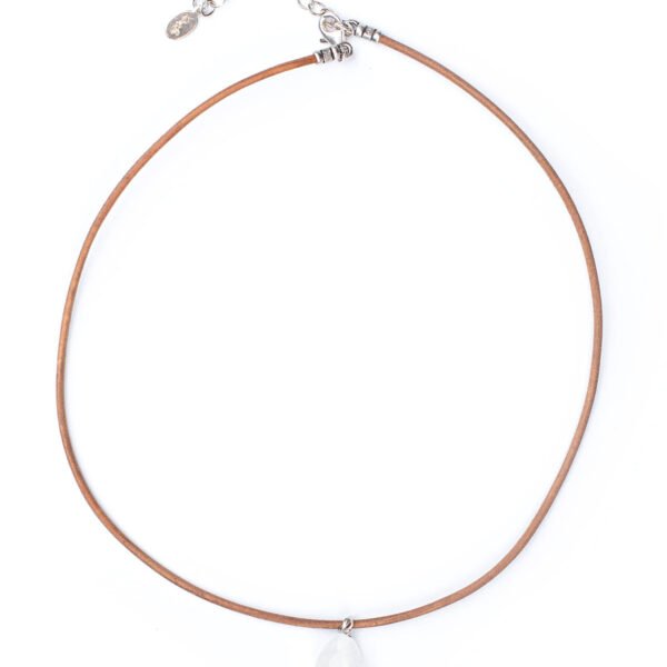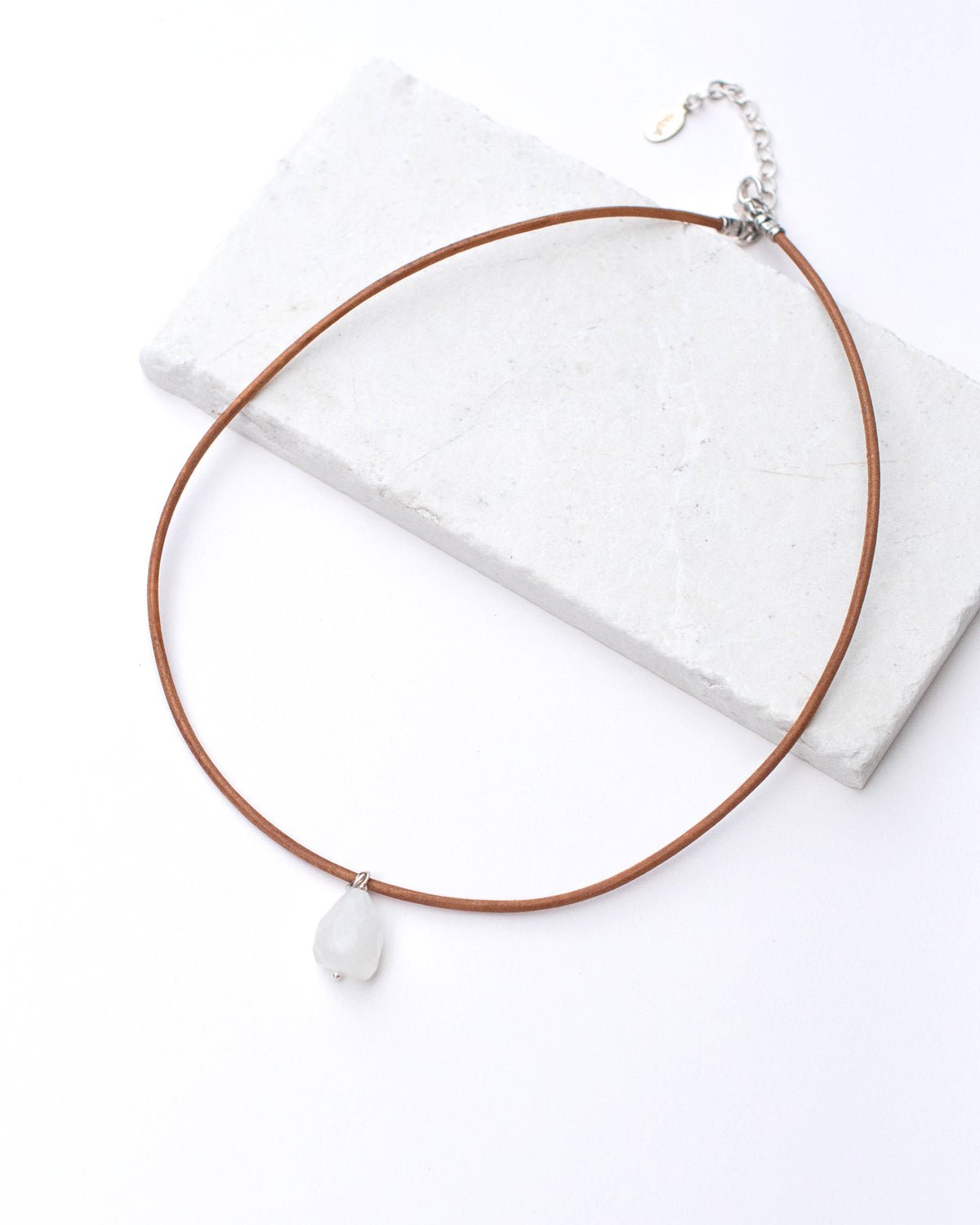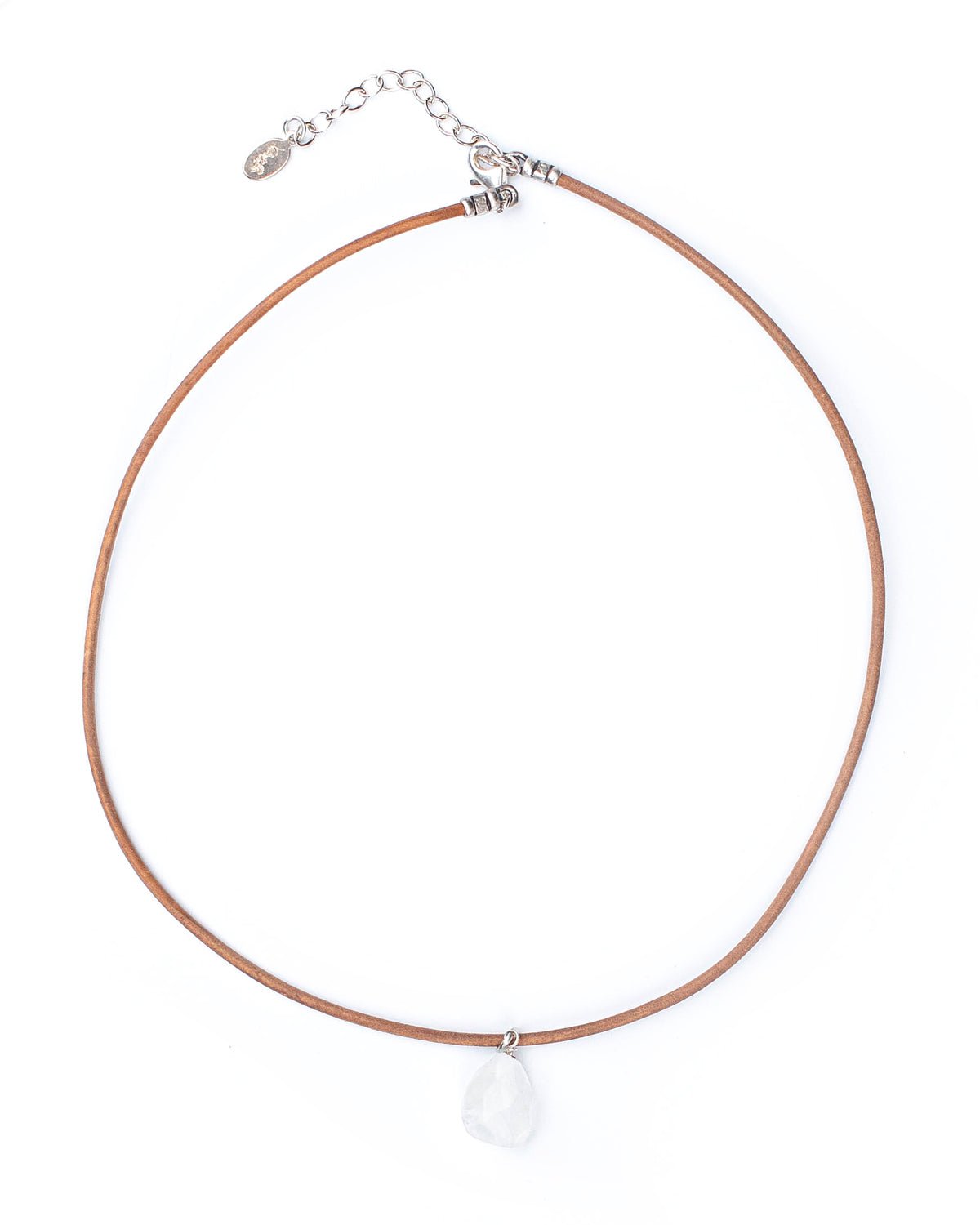 - Details: genuine rainbow moonstone. round leather cord. silver lobster clasp and chain
